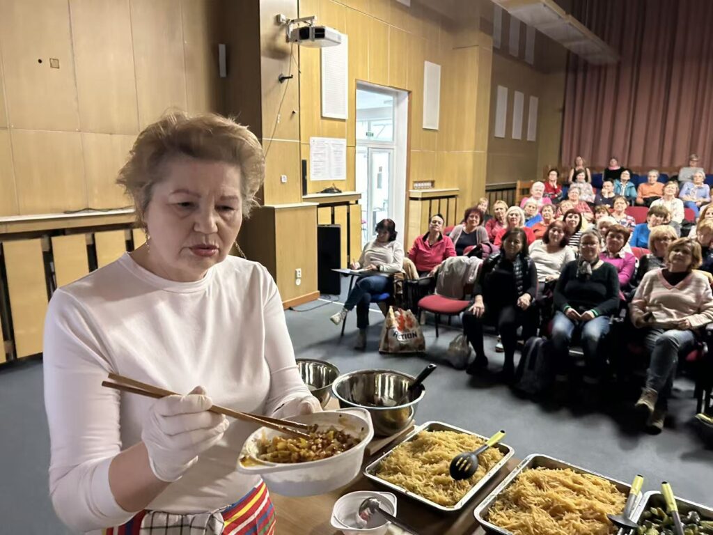 Miestne zemiaky sú vynikajúcej kvality a majú vysoký obsah škrobu, ale bežne sa pripravujú ako zemiaková kaša, pečené zemiaky, vyprážané zemiaky alebo dusené zemiaky. Na podujatí boli predstavené účastníkom rôzne metódy prípravy jedál zo zemiakov v rôznych kultúrach. S pomocou predsedníčky Klubu seniorov, p. Snopkovej a troch ďalších členov boli na mieste pripravené dve reprezentatívne čínske domáce vegetariánske jedlá zo zemiakov s cesnakom a uhorkovým šalátom. Účastníci sa potom pripojili k vareniu a spoločne ochutnali čerstvo pripravené jedlá, ktoré boli účastníkmi vysoko hodnotené. Na konci podujatia organizátori pripravili aj tradičné čínske sladké ryžové guľôčky (tangyuan), ktoré účastníkom umožnili ďalej zažiť jedinečné čaro vegetariánskej kultúry stravovania v príjemnej atmosfére.